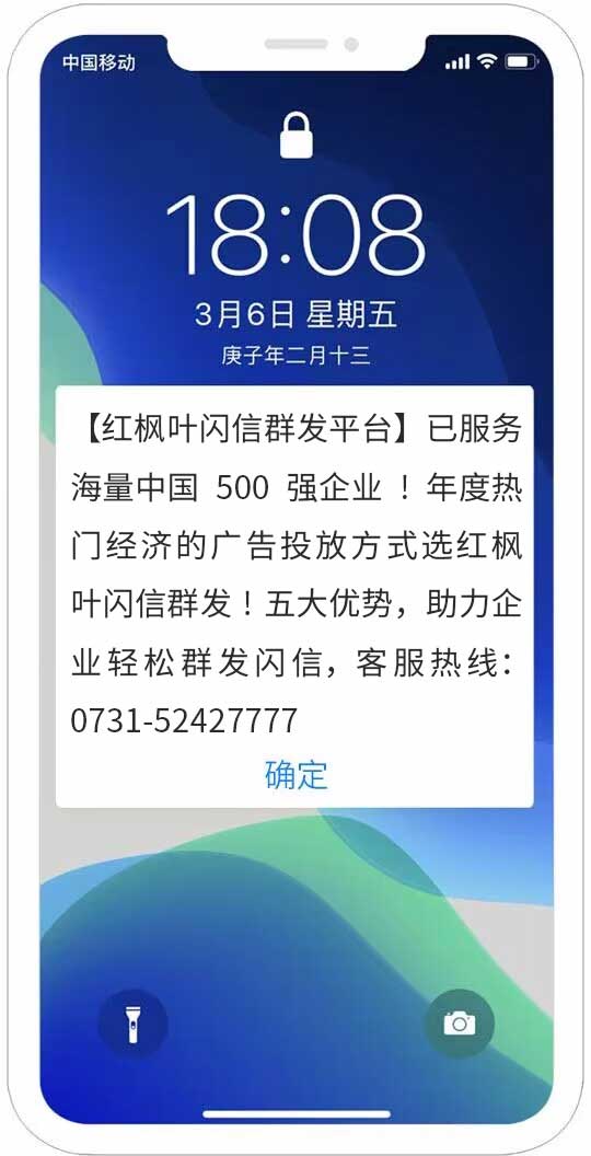 沒有一種短信能不被手機攔截呢?試試紅楓葉閃信群發(fā),紅楓葉閃信群發(fā),(又稱彈屏短信、霸屏短信)是指用戶在收到閃信群發(fā)內容后,無需打開,短信內容直接顯示在用戶手機屏幕上,用戶如果沒有點擊閱讀,則閃信內容一...